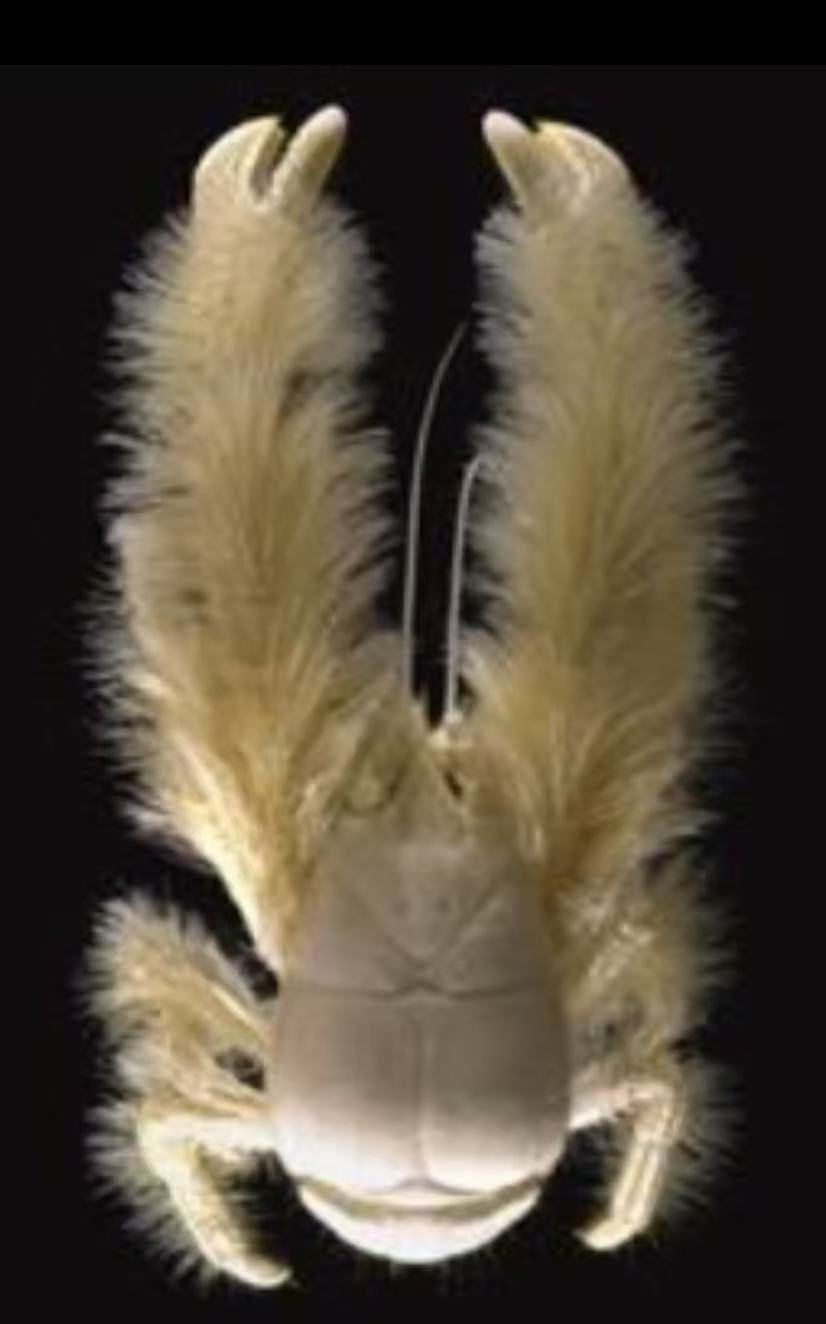 特殊结构:刚毛为丝状细菌提供附着表面,形成“共生农场”;部分物种的刚毛密度极高,被吉尼斯认证为“毛最浓密的甲壳动物”