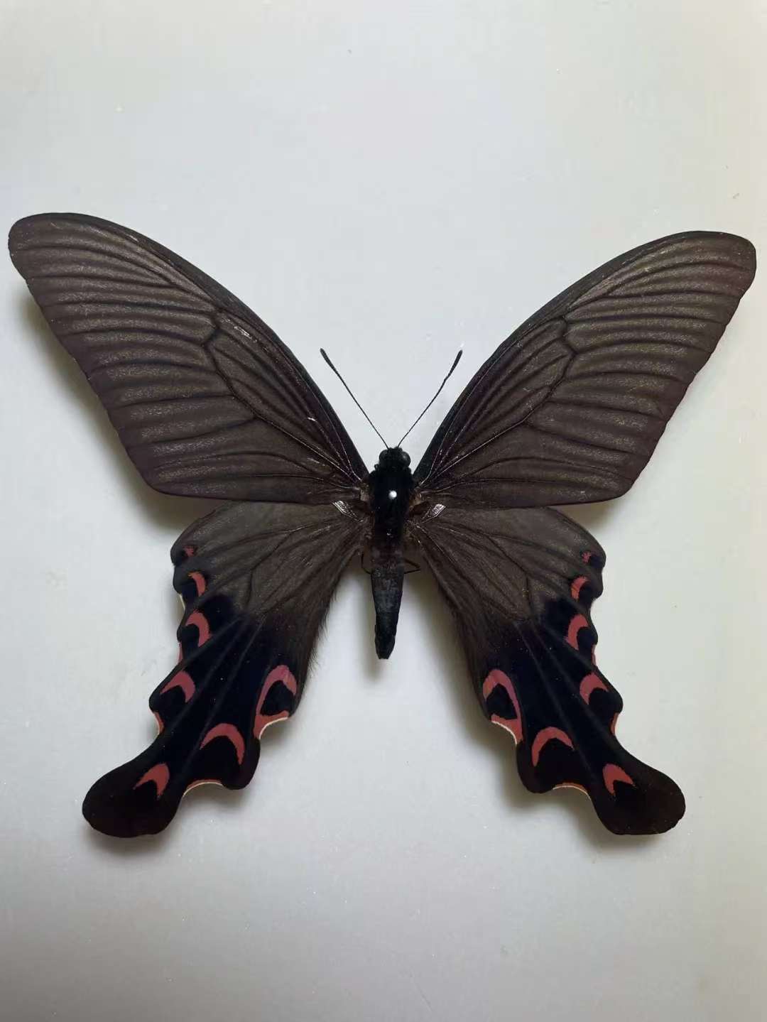• 后翅具1支异常宽大的尾突,其宽度显著超过其他凤蝶,且内部贯穿两条翅脉(M3与Cu1),此为全球凤蝶科独一无二的特征。