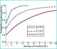 当一个新的群体只由几个个体建立起来时,就发生了随机漂变的极端情况,即称为奠基者效应,在海岛生活的许多物种的群体,尽管已有几百万个个体组成,但它们往往都是很久以前偶然到来的一个或几个移居者的后裔。湖泊、隔离的森林和生境中也有这种情况。如果这几个移居者之间在某些基因座上的基因频率的差别,大于这几个移居者本来所属群体之间的差别,则将对这些移居者后裔的进化产生持久的重大影响。